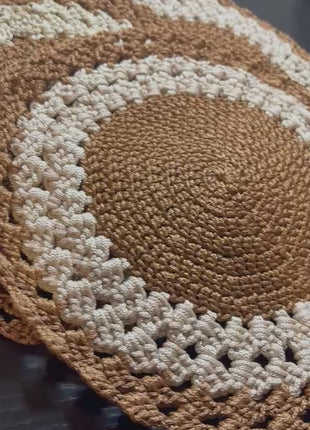 8 Inch Doilies Crochet Round Lace Doily Handmade Placemats 100% Cotton Crocheted Coasters, Pack of 4 (Beige)